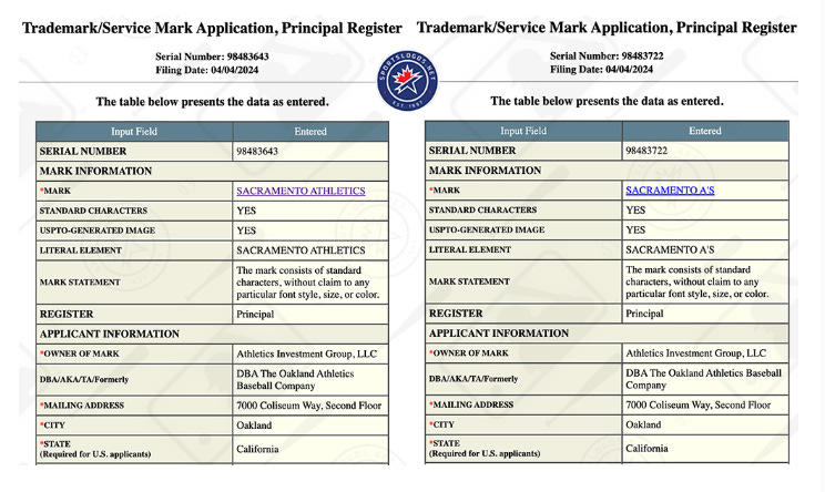 Alright. First things first you have to know that Oakland is definitely not getting the Athletics back. Just yesterday, the Oakland Athletics have trademarked the name Athletics.